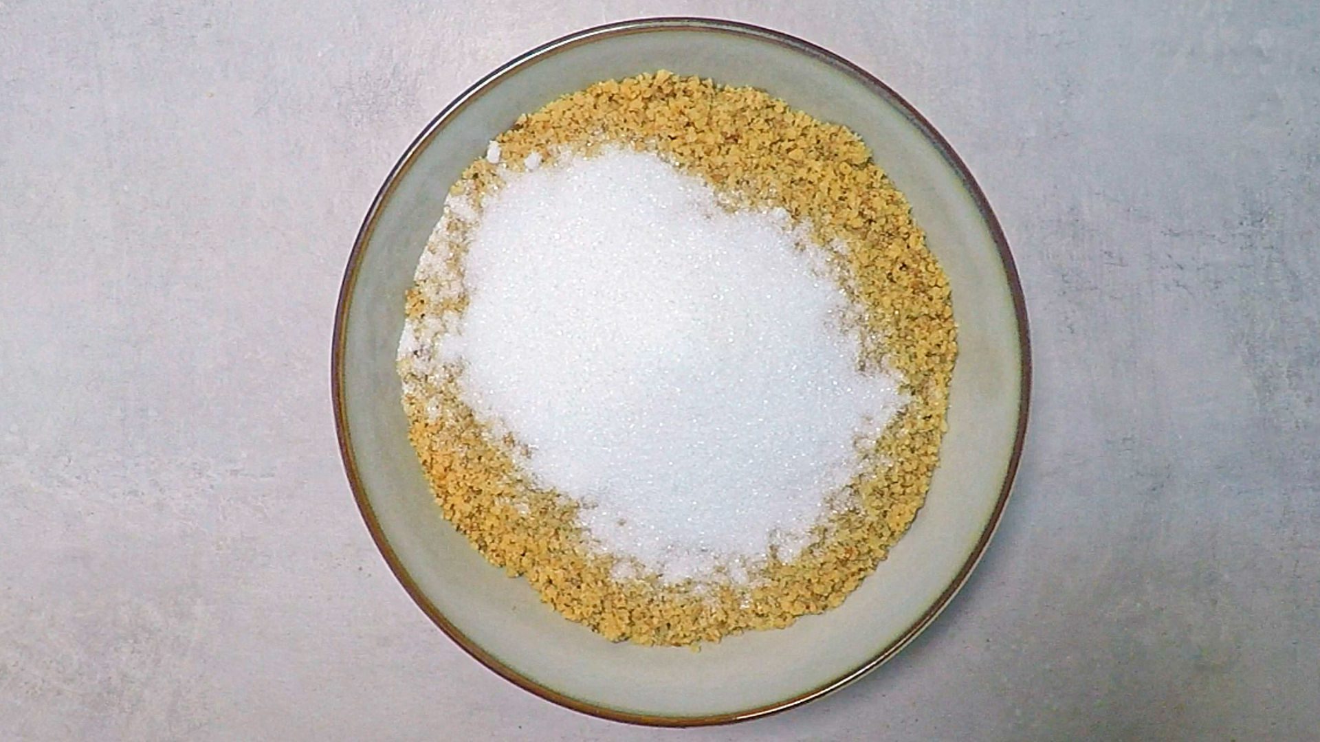 In a bowl, mix the ground Walnuts with 4 TS of Sugar. Set aside.