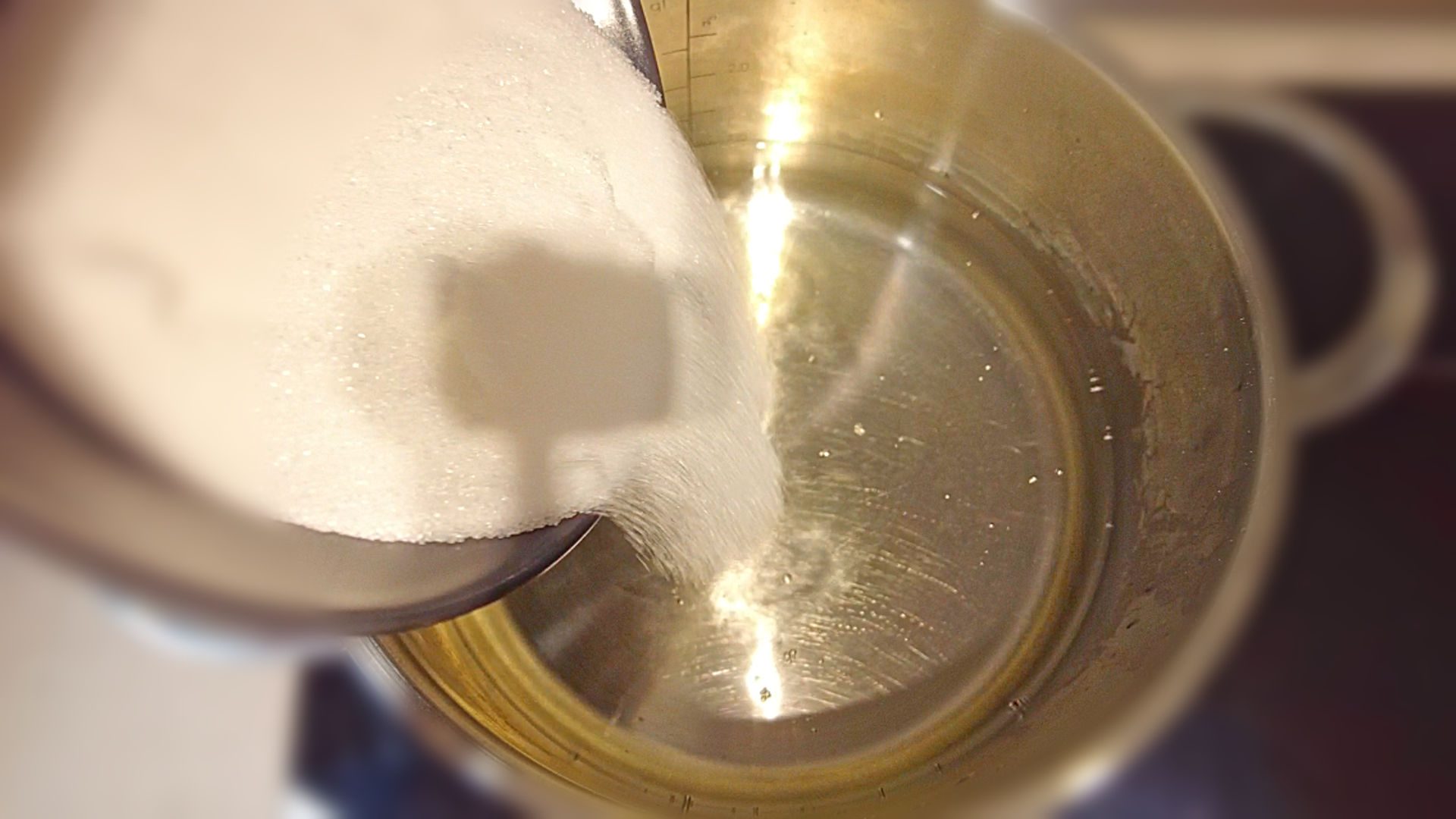 In a pot, bring the Water and Sugar to a boil. Once the Sugar dissolves, let it boil for a few minutes, then remove from heat.