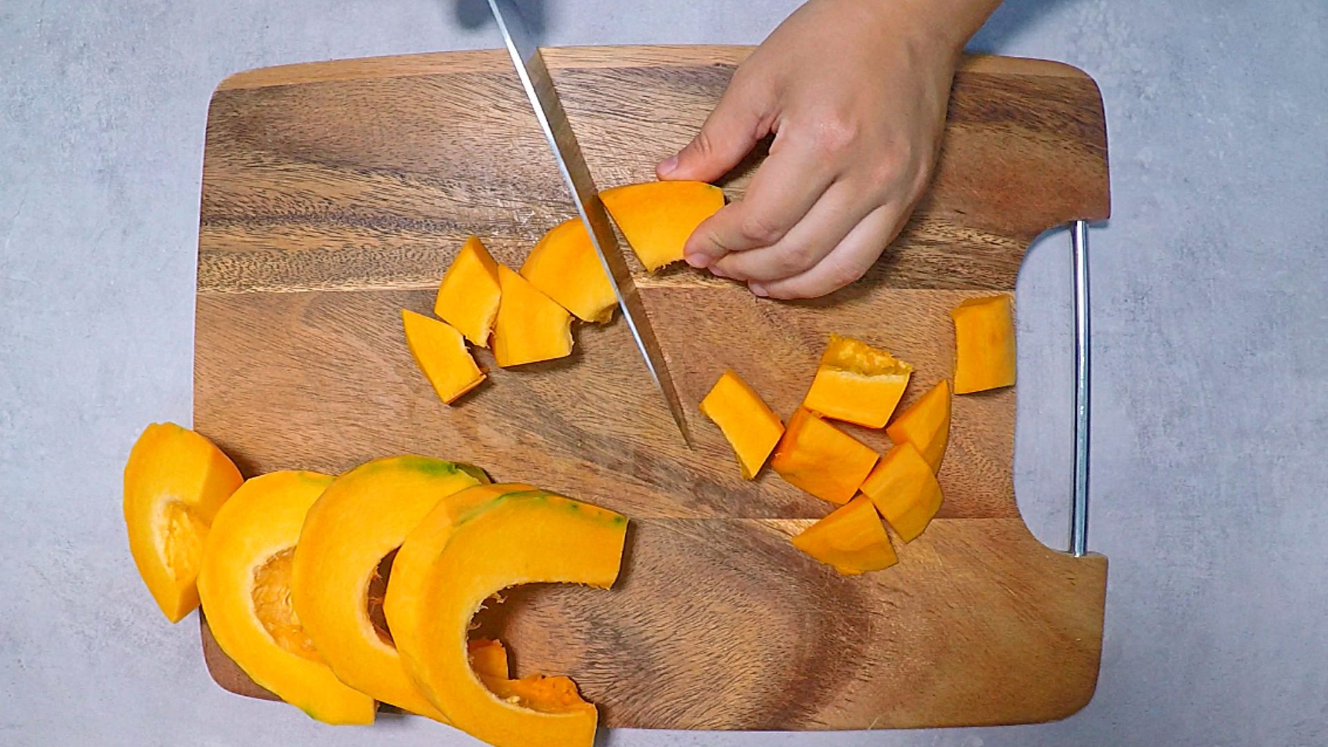 Peel and cut the Pumpkin into cubes.