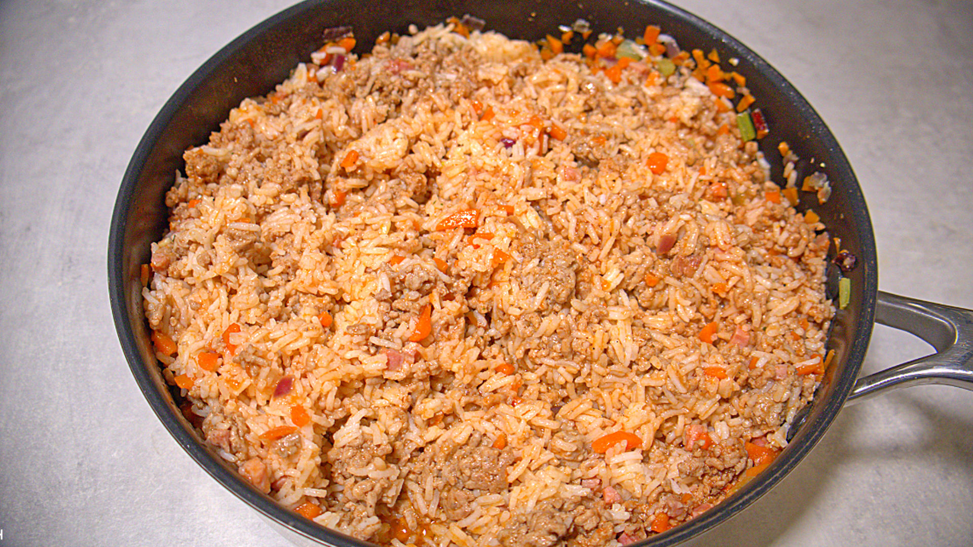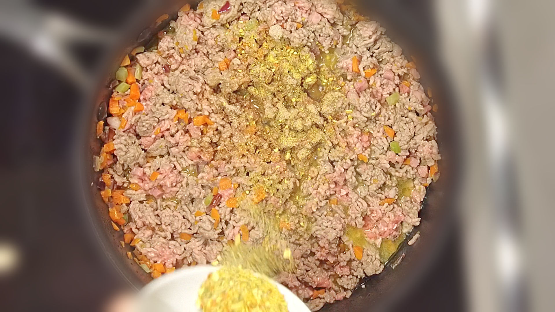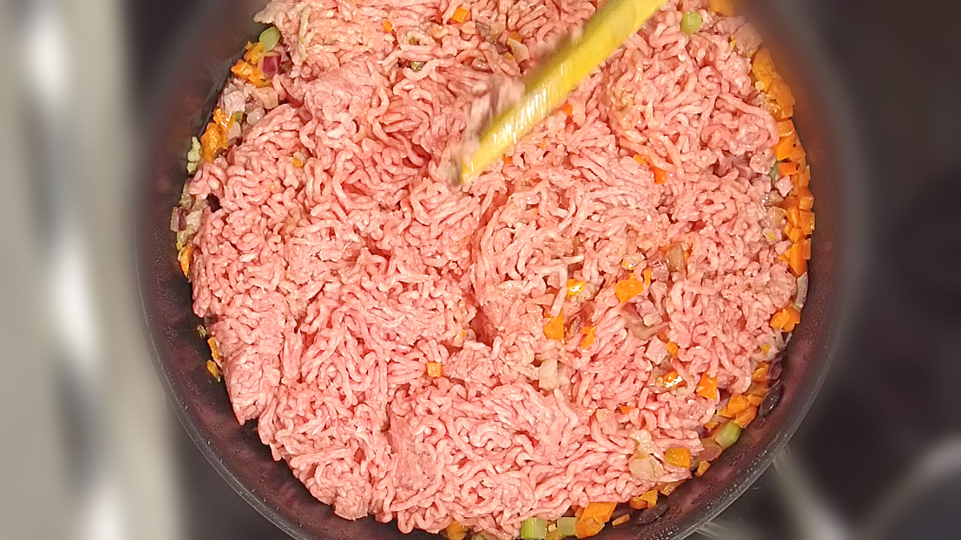 Add the Ground Meat to the pan and cook for about 10 minutes, stirring occasionally until itās browned.