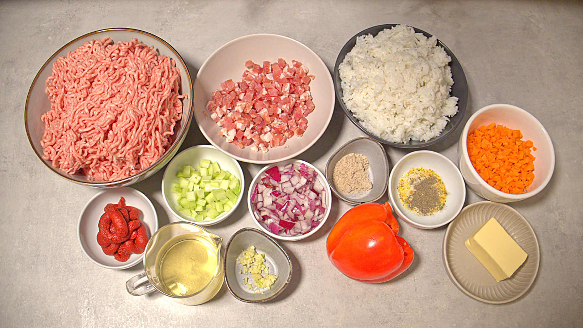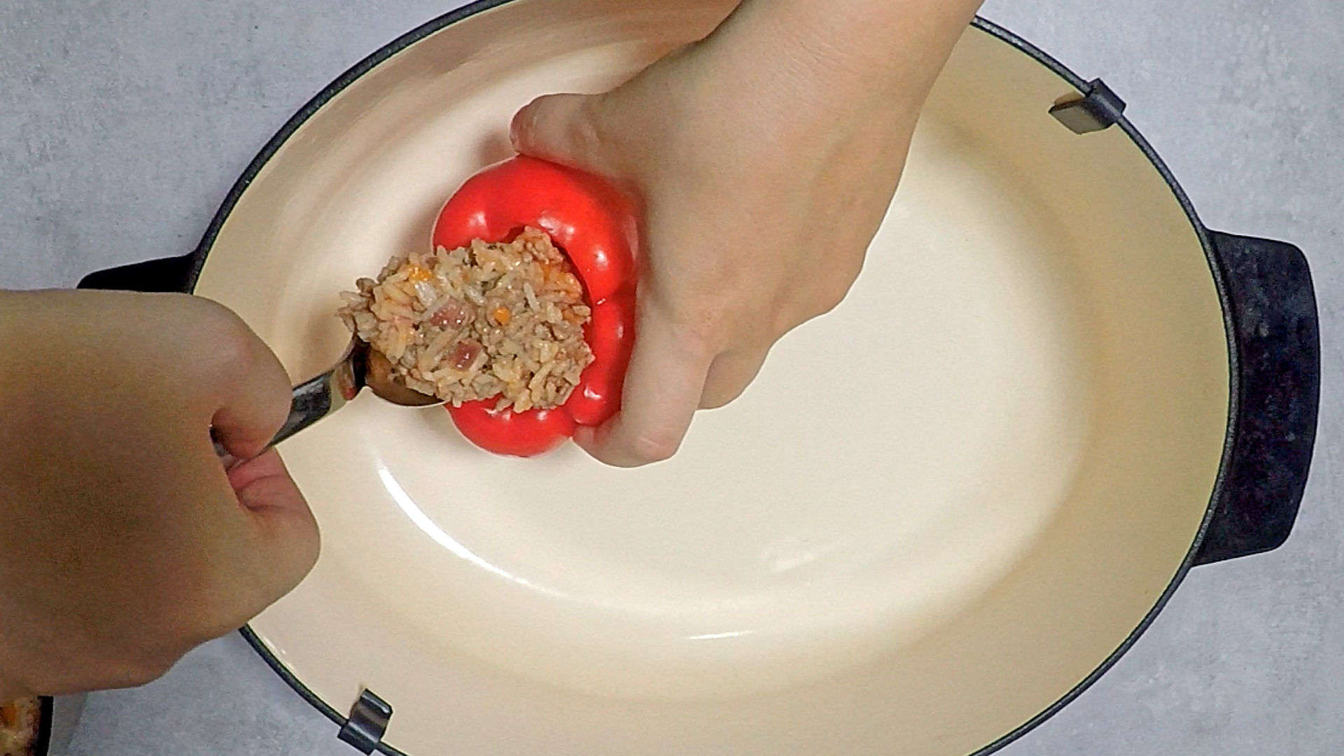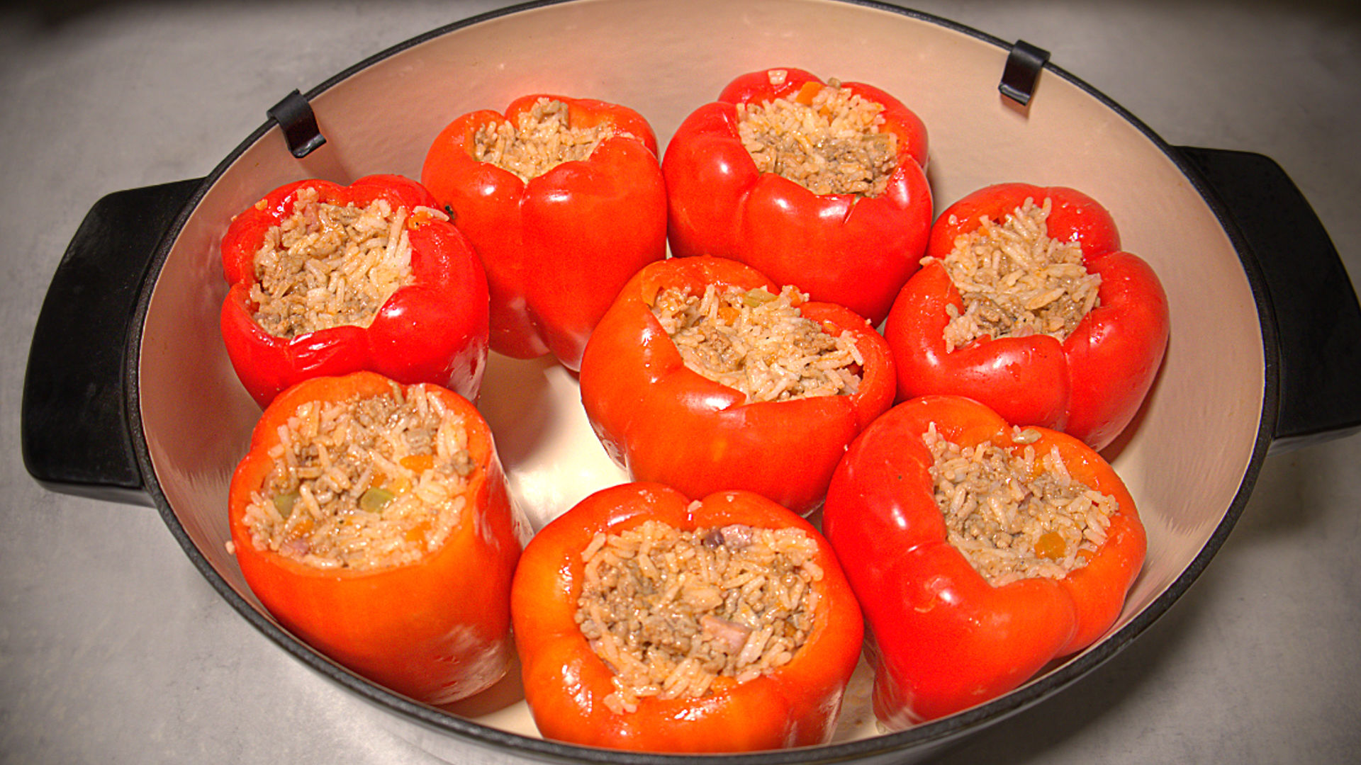 Fill each cleaned Pepper with the prepared Meat and Rice mixture.