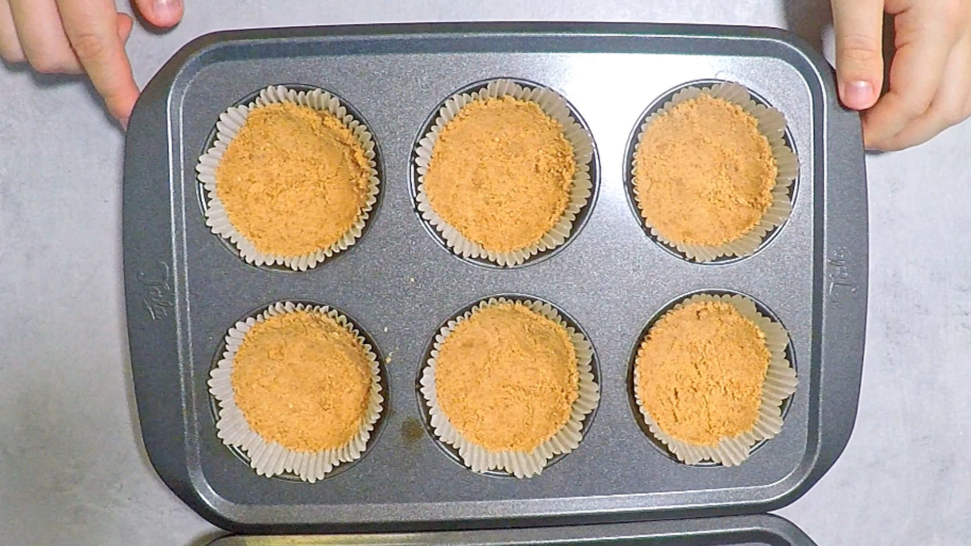Spoon the Biscuit and Butter mixture into Cupcake cases and press down lightly to create a level base.