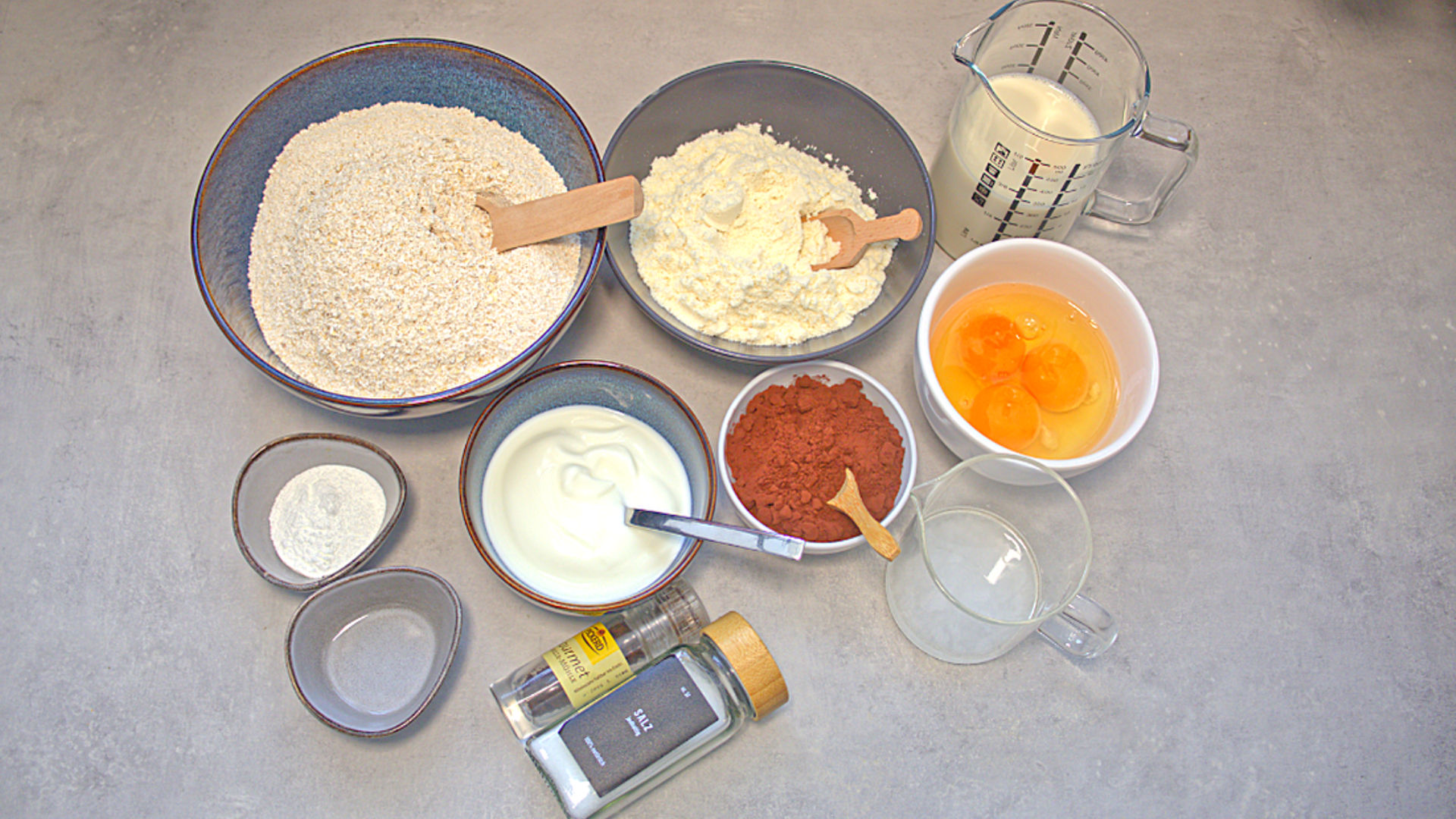 Combine Oat Flour, Whey Protein, Baking Powder, and Salt in a bowl.